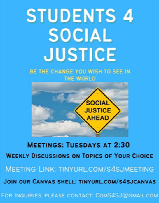 Date April 13th, 2021 - 2:30pm Location Online event - TINYURL.COM/S4SJMEETING Presenter Students for Social Justice Contact [email protected] Fee Free